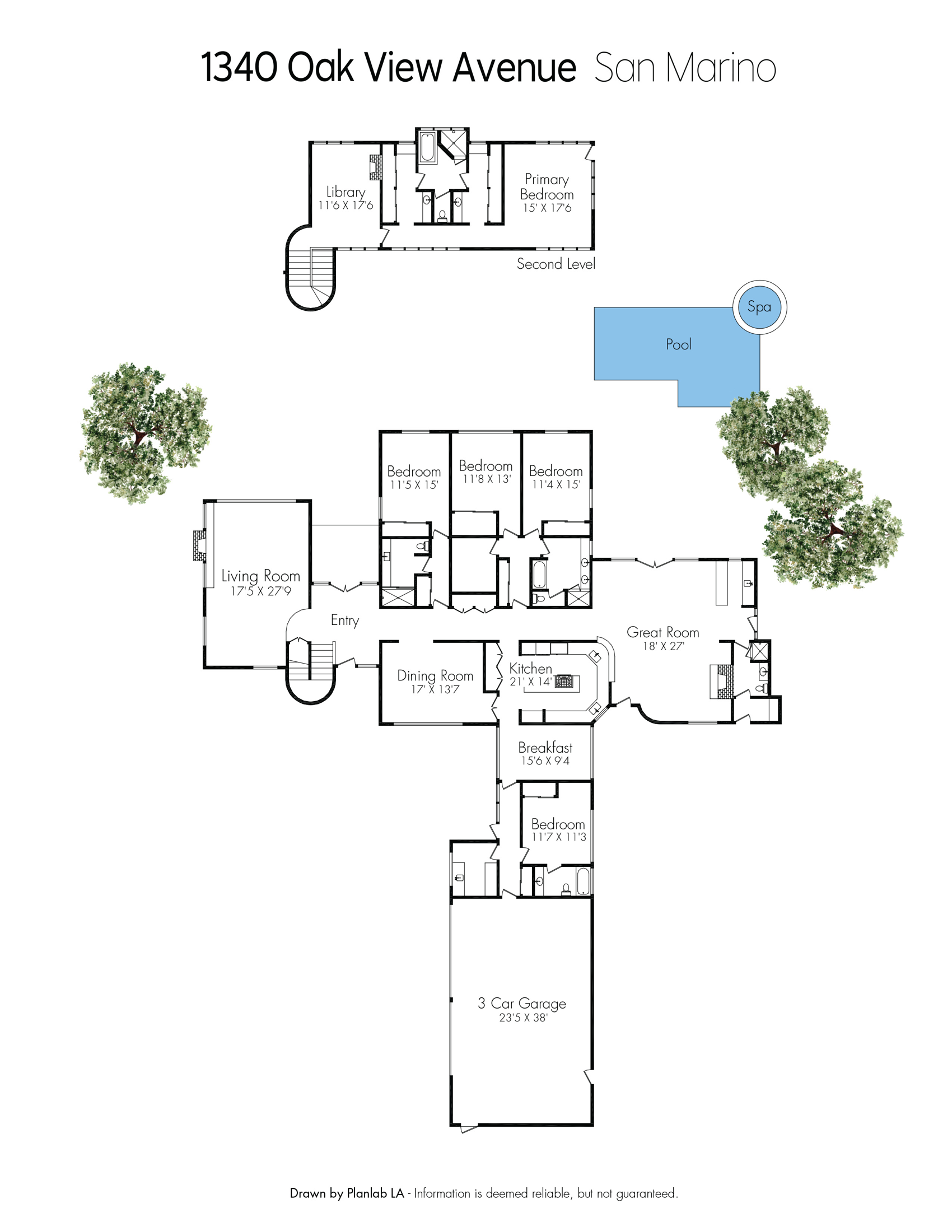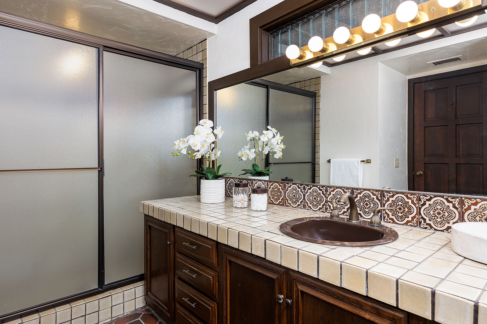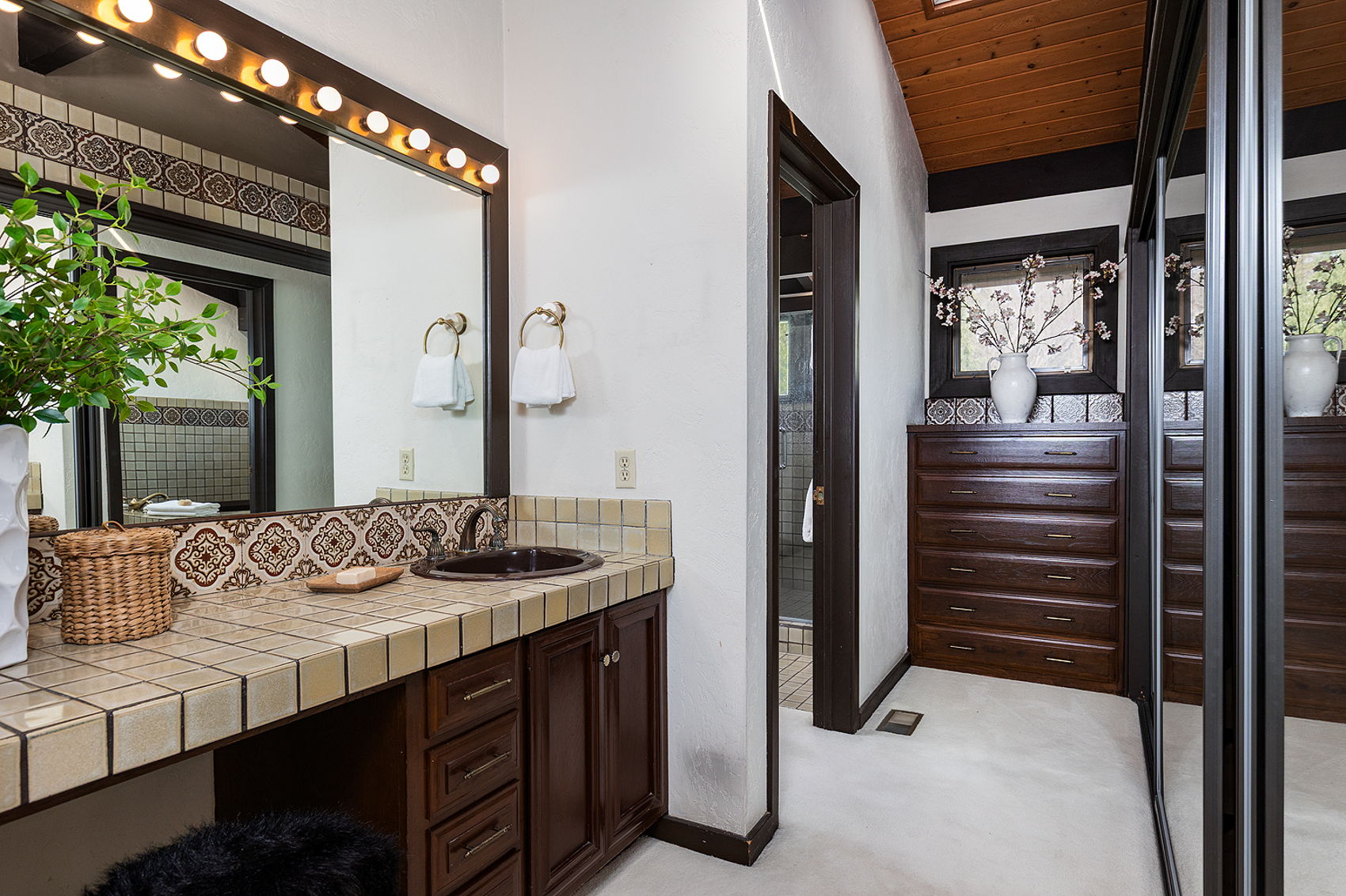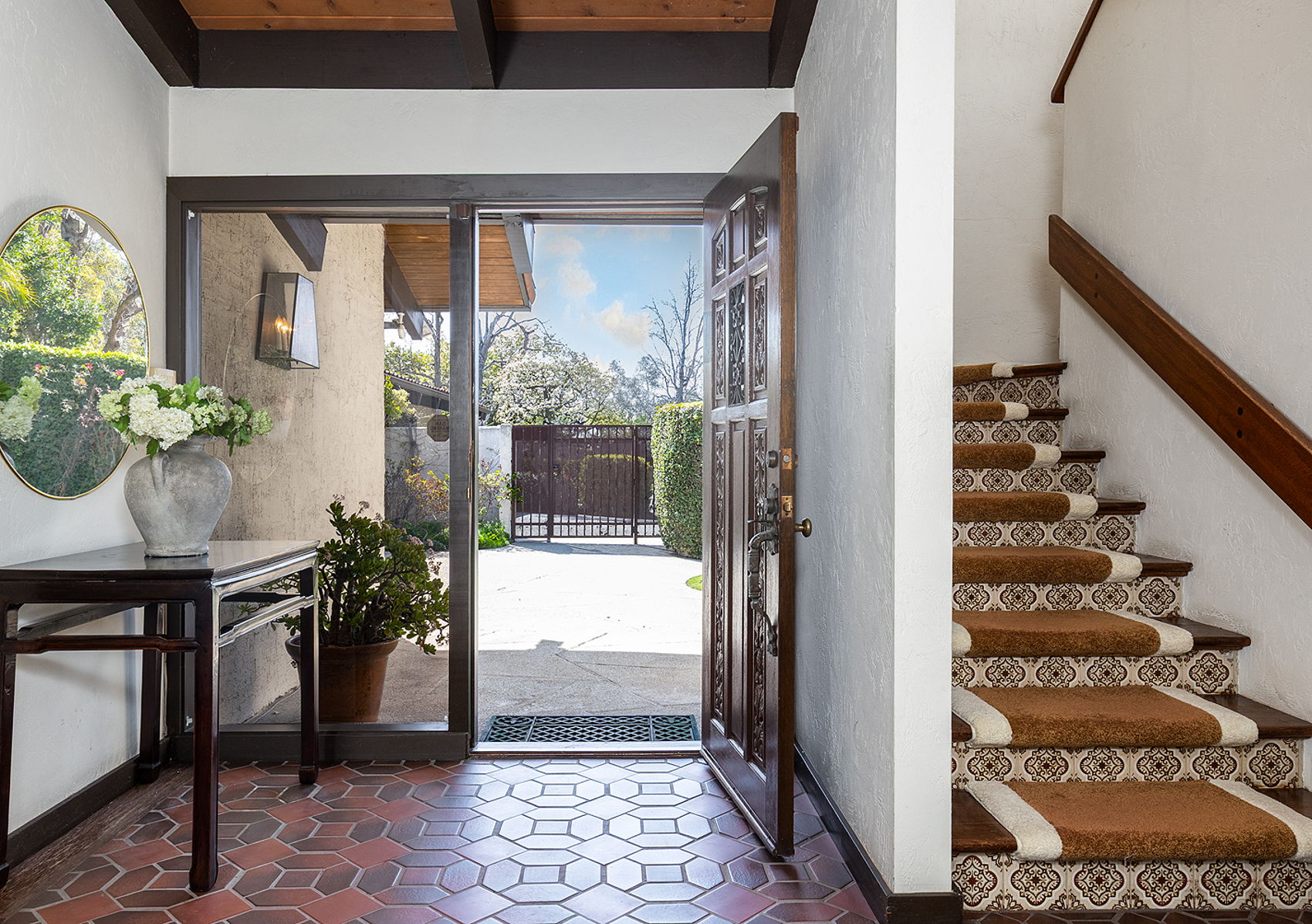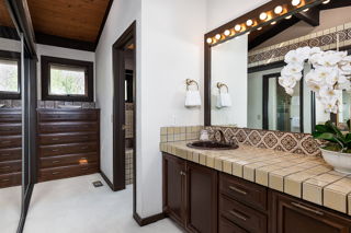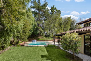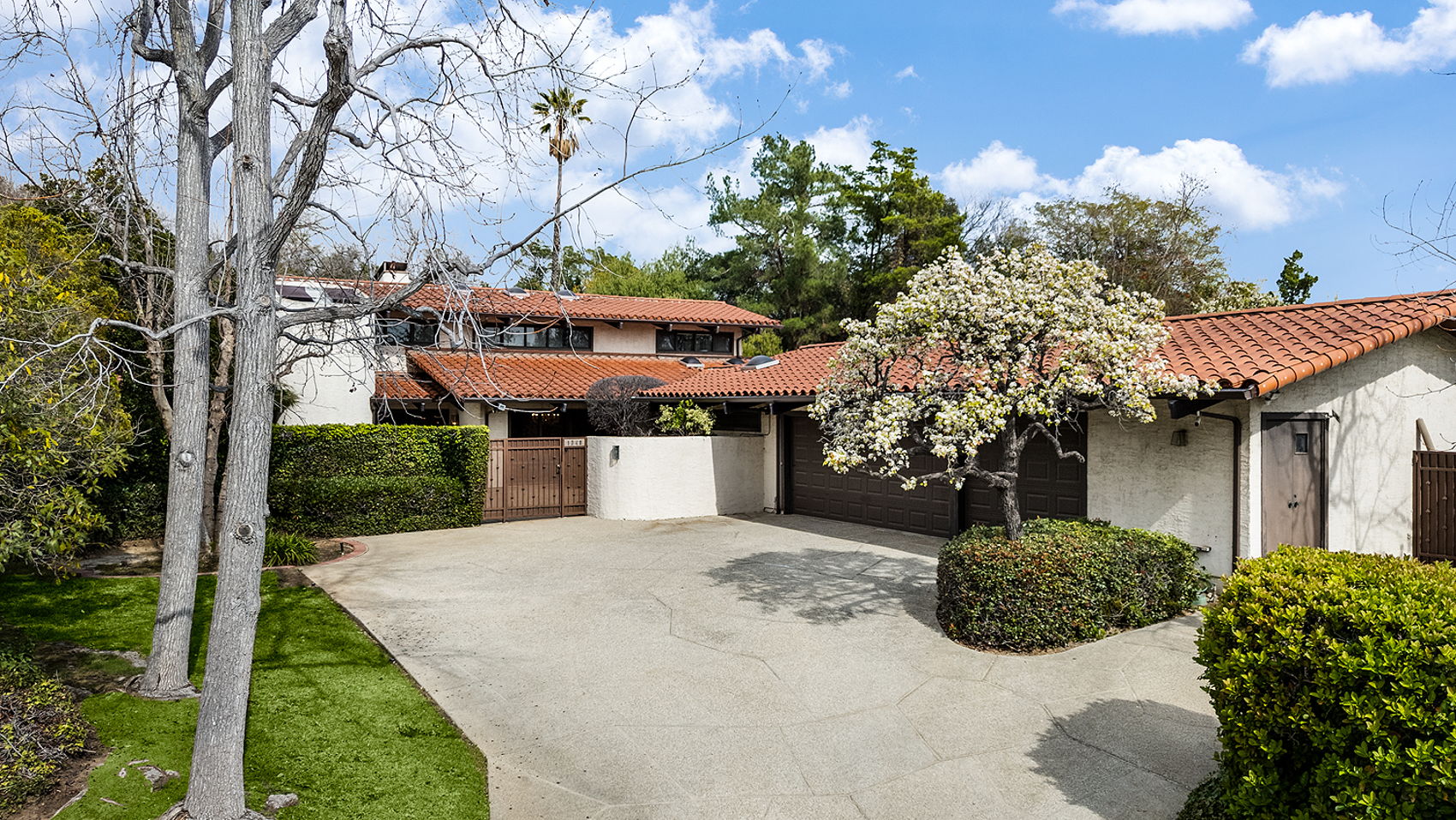 Secluded, private and serene, 1340 Oak View Avenue is a bright Spanish style home in the premier Huntington Library estate area of San Marino on a quiet cul-de-sac. Sited behind gates this special property consists of a spacious 5 bedroom / 5 bath residence with pool and north / south tennis court on ¾ of an acre. The attractive foyer opens on the left to a grand living room with an impressive fireplace, soaring ceiling and an abundance of dramatic windows with garden views; a wet bar is tucked in at the living room foyer landing. The hallway then proceeds on the right to the formal dining room with elegant chandelier and windows overlooking the front courtyard, and then to the attractive Spanish tiled gourmet kitchen with center island, and to a large great room with Spanish tiled fireplace, skylights and wet bar. A one-bedroom suite and two bedrooms that share a bath are adjacent with views of the back garden. Beyond the kitchen are the laundry and a back bedroom and bath. A three-car attached garage completes the first level. Upstairs, the primary suite has an office / library with fireplace, a large primary bedroom and a generous primary bath with a tub, shower and commode flanked by two separate Pulman sink and closet areas. Ideal for entertaining, the exterior offers a patio with fire pit overlooking the pool, a tennis court and lovely mature plantings. Located close to Lake Street shopping, freeways, Polytechnic School, and Caltech, 1340 is wonderful!