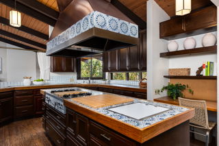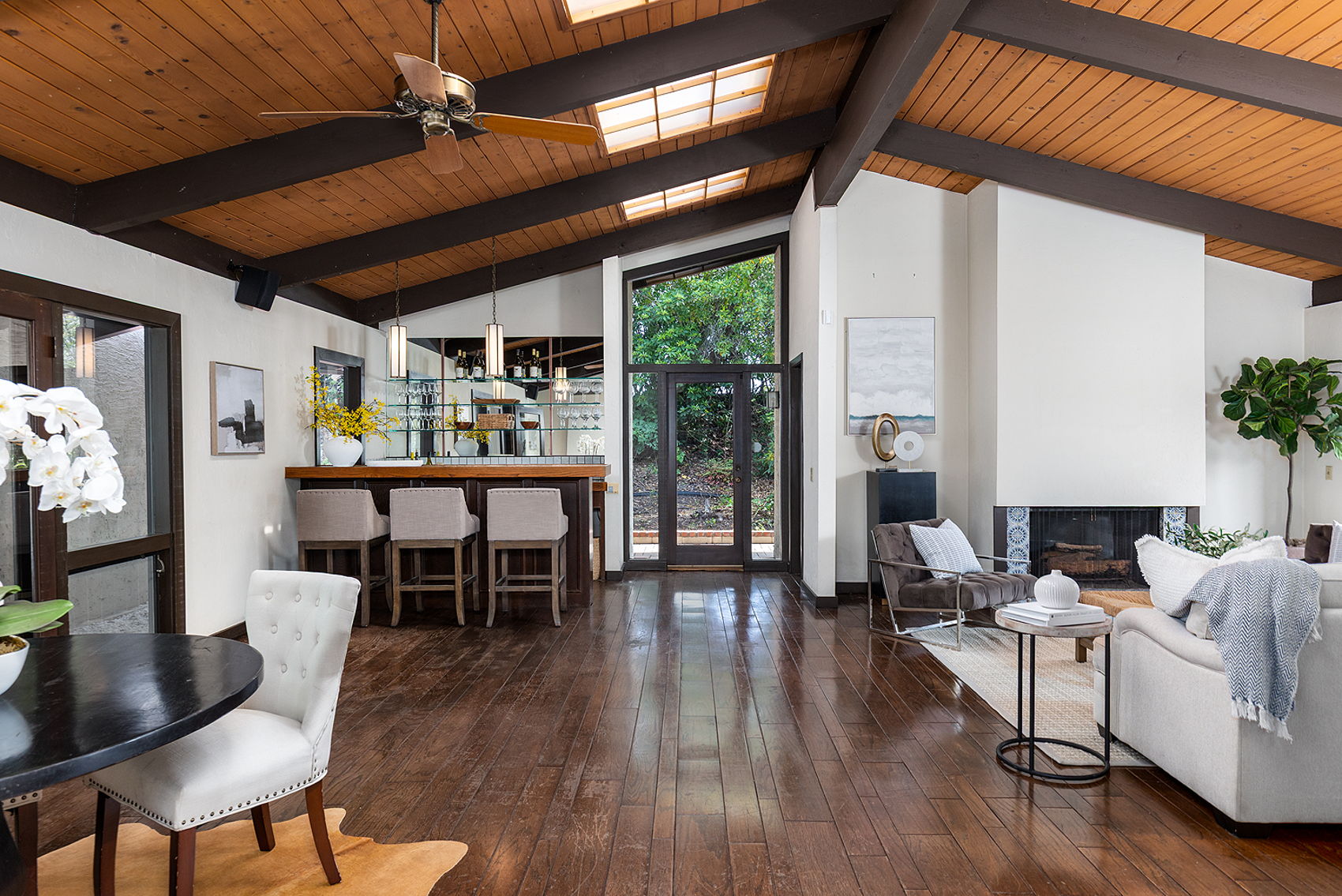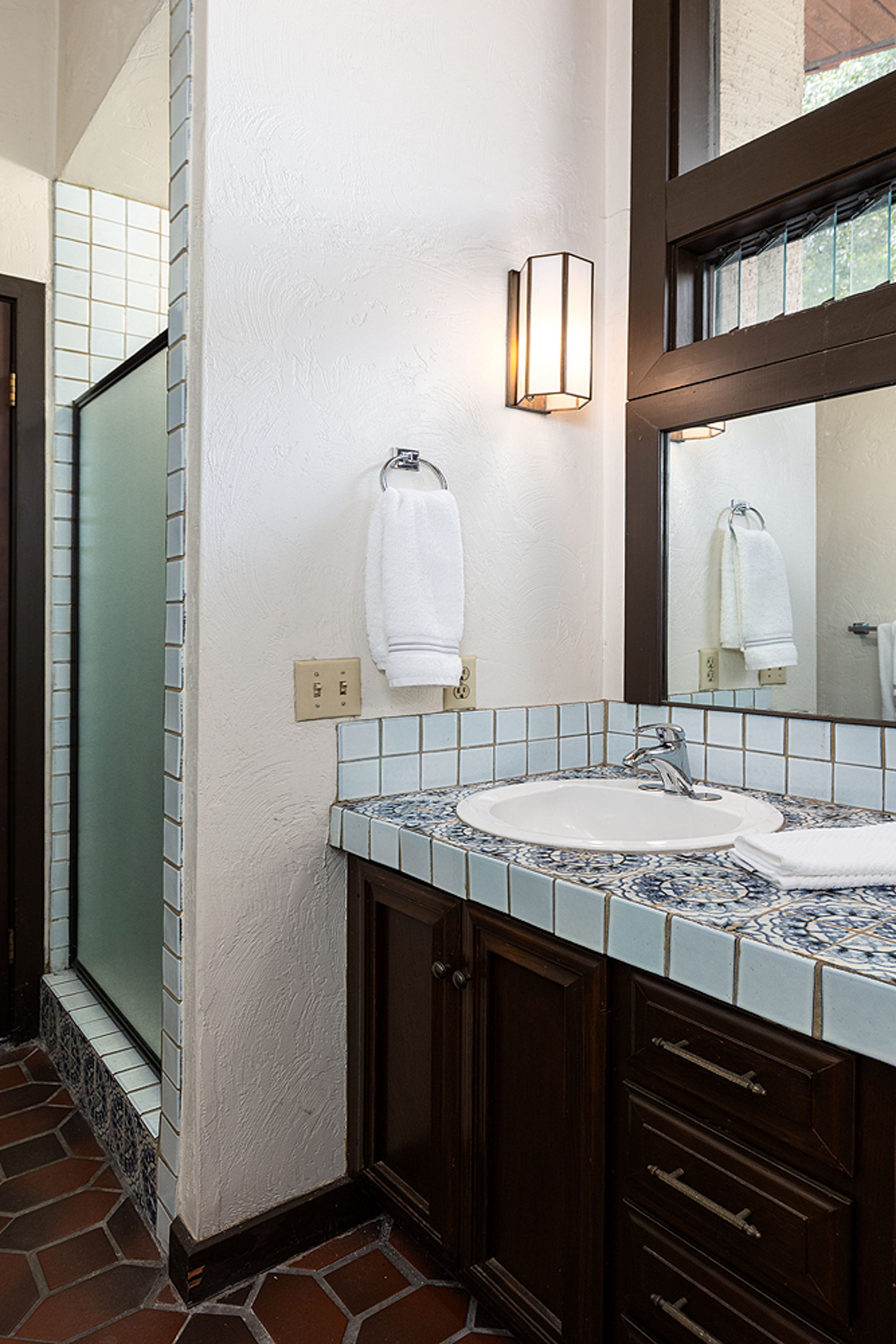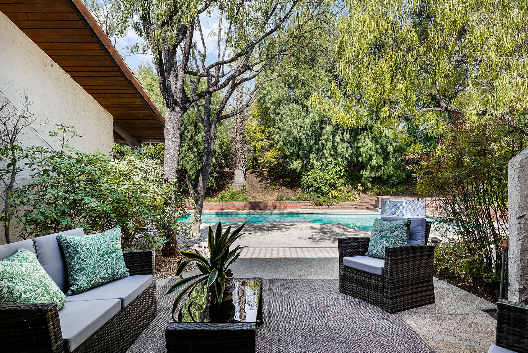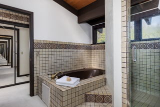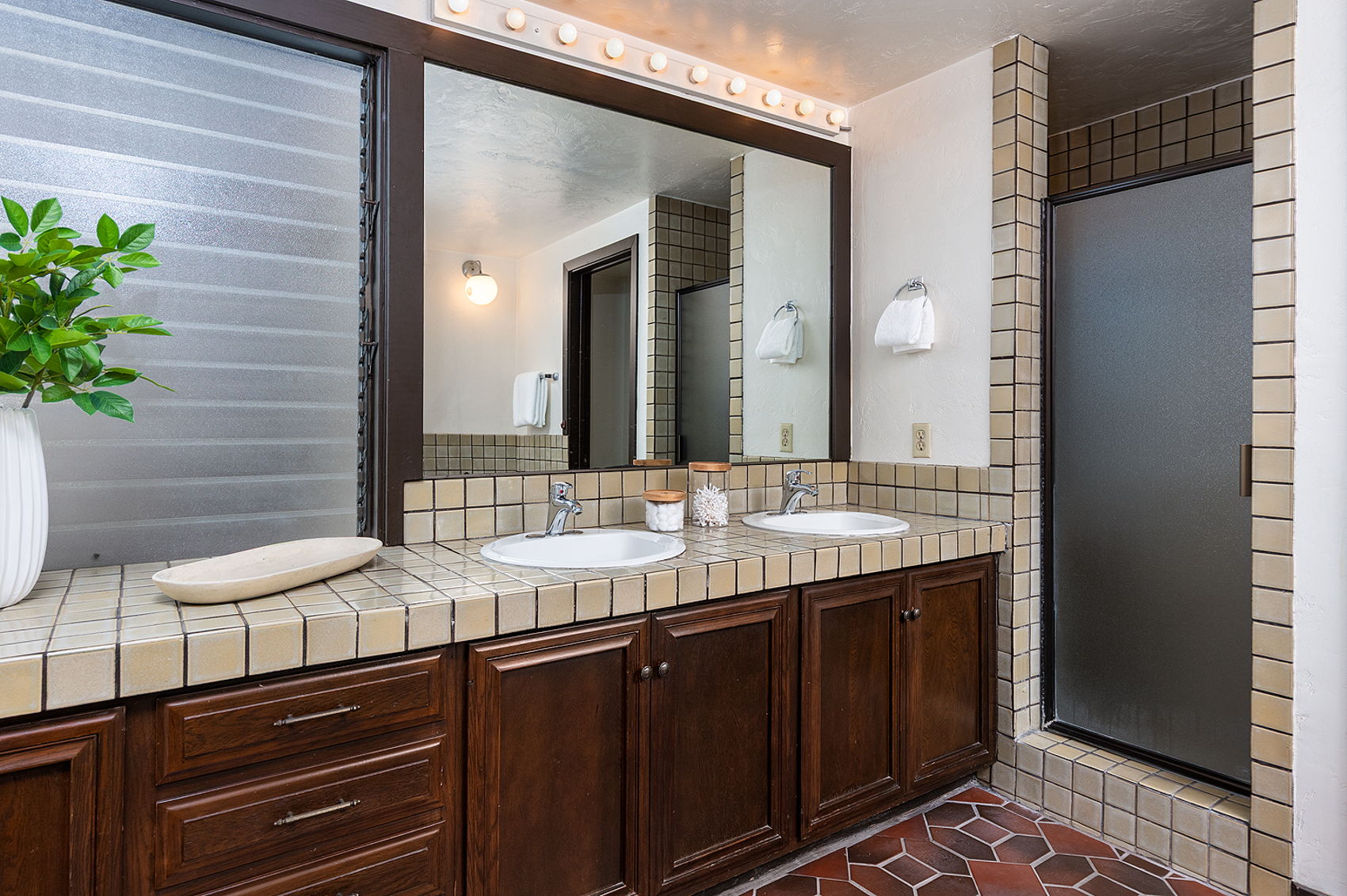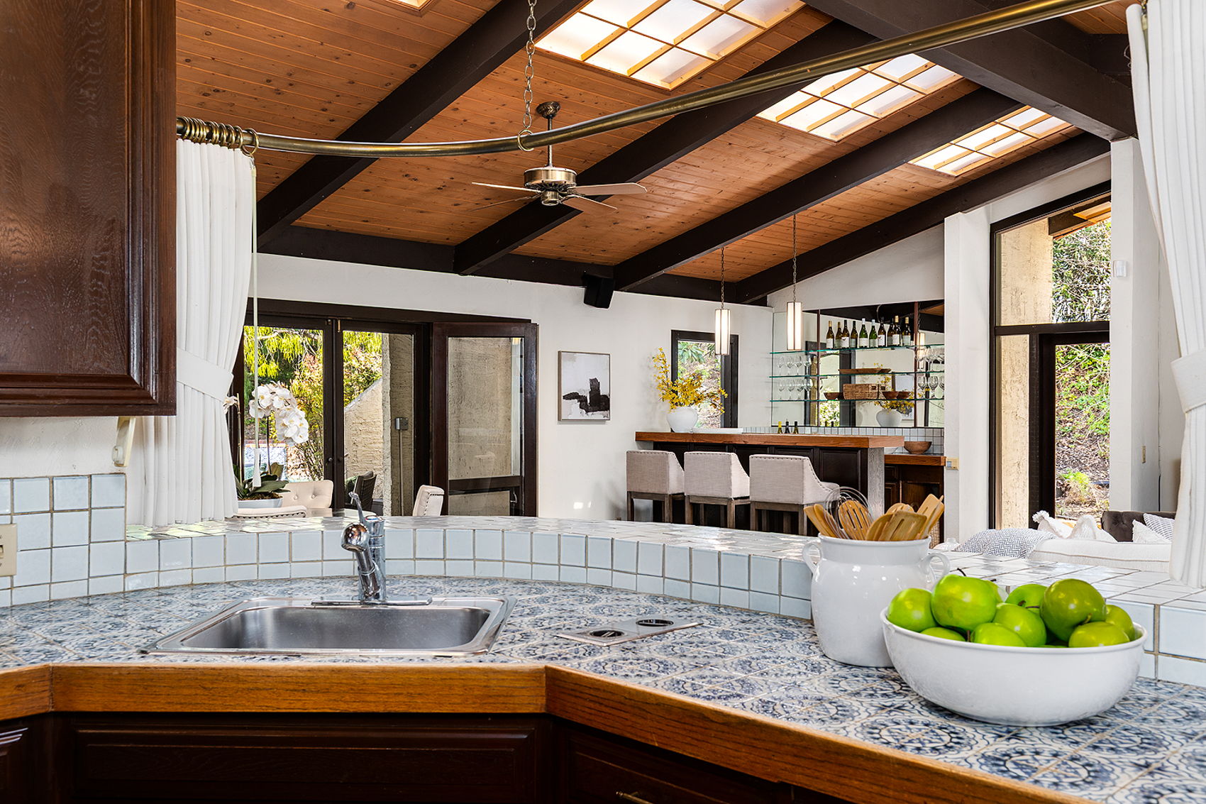 Secluded, private and serene, 1340 Oak View Avenue is a bright Spanish style home in the premier Huntington Library estate area of San Marino on a quiet cul-de-sac. Sited behind gates this special property consists of a spacious 5 bedroom / 5 bath residence with pool and north / south tennis court on ¾ of an acre. The attractive foyer opens on the left to a grand living room with an impressive fireplace, soaring ceiling and an abundance of dramatic windows with garden views; a wet bar is tucked in at the living room foyer landing. The hallway then proceeds on the right to the formal dining room with elegant chandelier and windows overlooking the front courtyard, and then to the attractive Spanish tiled gourmet kitchen with center island, and to a large great room with Spanish tiled fireplace, skylights and wet bar. A one-bedroom suite and two bedrooms that share a bath are adjacent with views of the back garden. Beyond the kitchen are the laundry and a back bedroom and bath. A three-car attached garage completes the first level. Upstairs, the primary suite has an office / library with fireplace, a large primary bedroom and a generous primary bath with a tub, shower and commode flanked by two separate Pulman sink and closet areas. Ideal for entertaining, the exterior offers a patio with fire pit overlooking the pool, a tennis court and lovely mature plantings. Located close to Lake Street shopping, freeways, Polytechnic School, and Caltech, 1340 is wonderful!